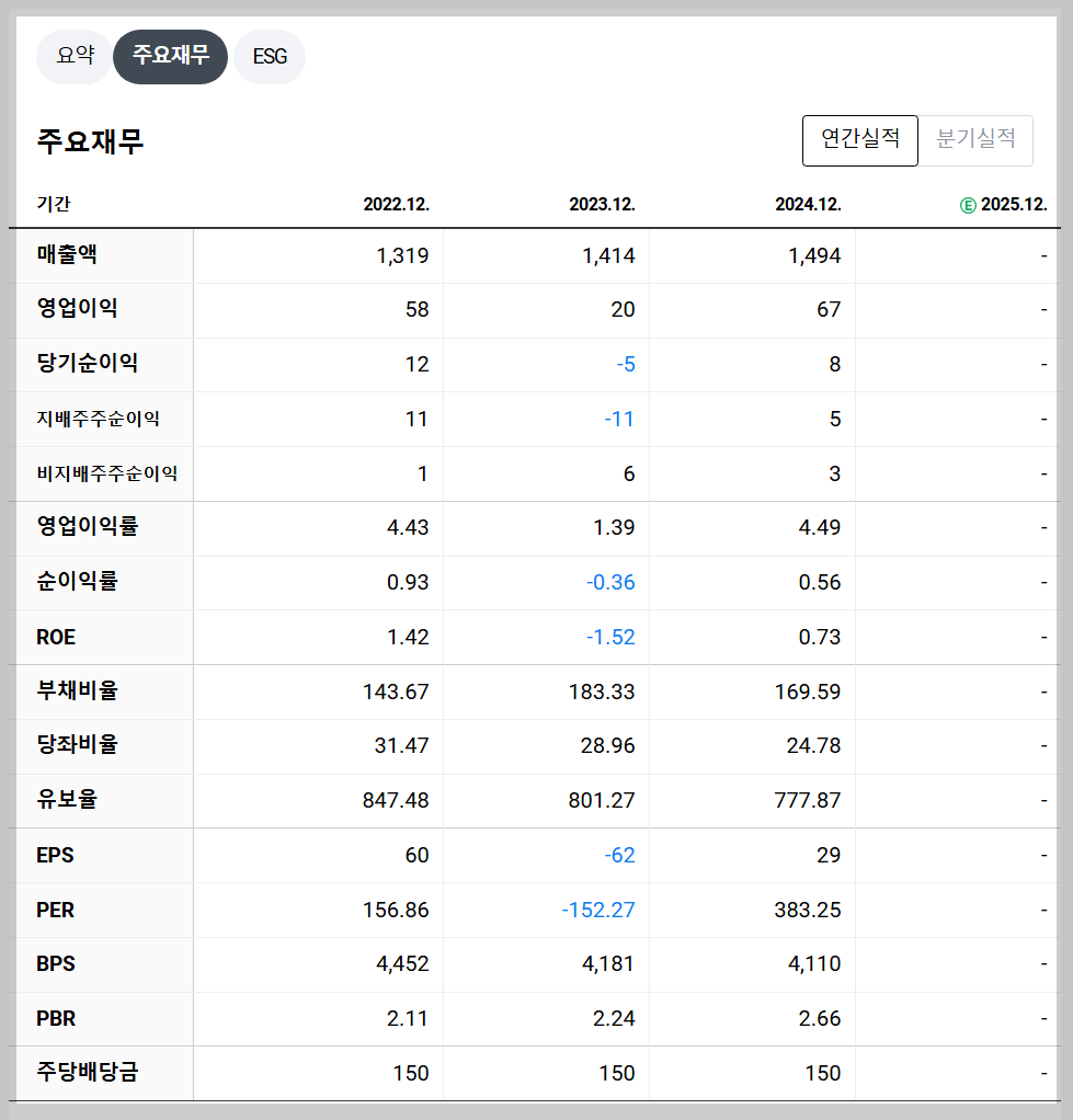 - 2024년 매출액: 1,494억 원 (전년 대비 5.7% 증가)