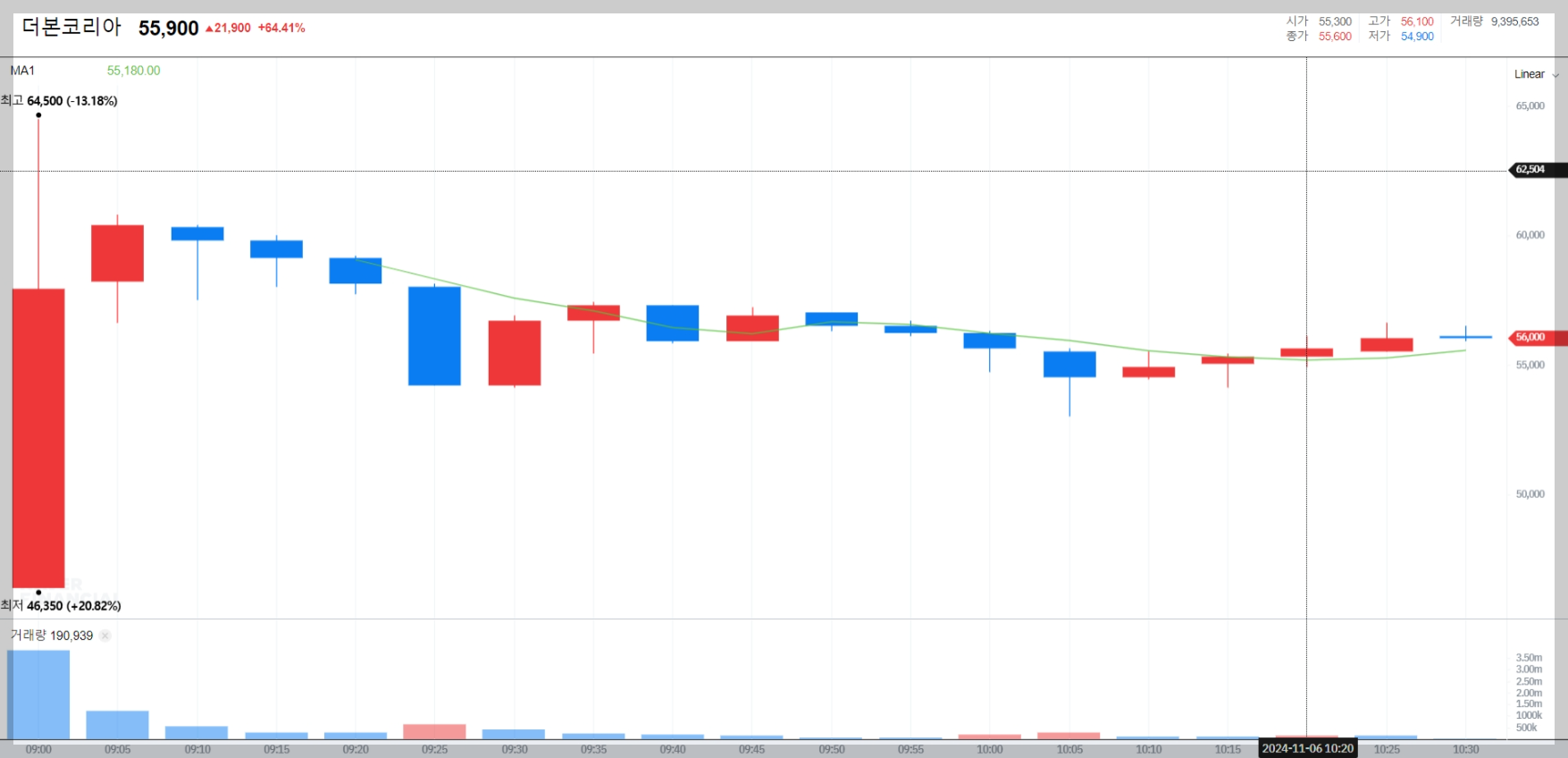 2024년 11월 6일 현재, 더본코리아의 주식은 55,900원에 거래되고 있습니다.