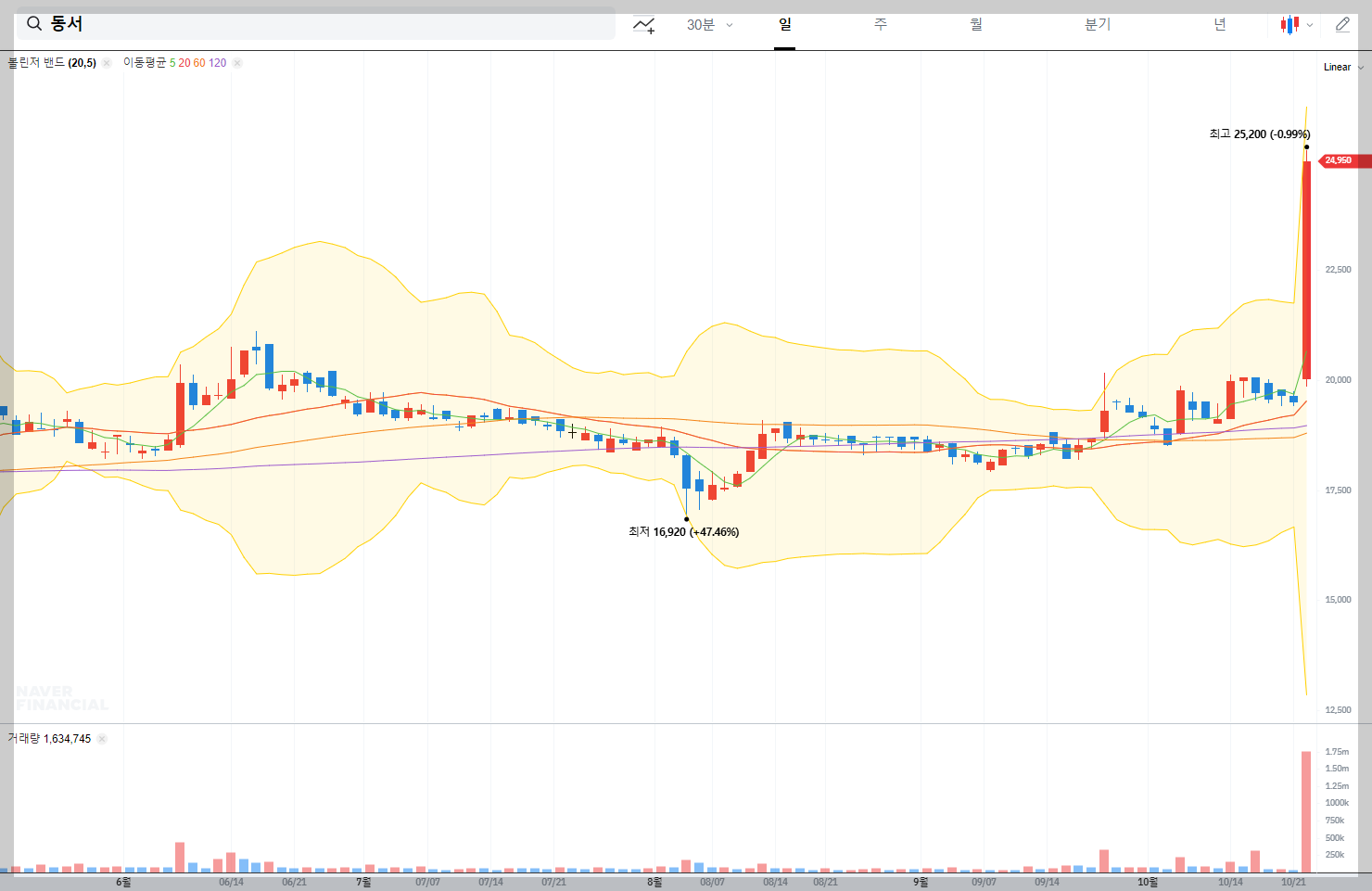 동서의 주가는 현재 25,300원으로, 최근의 급등세 이후 안정적인 모습을 나타내고 있습니다.