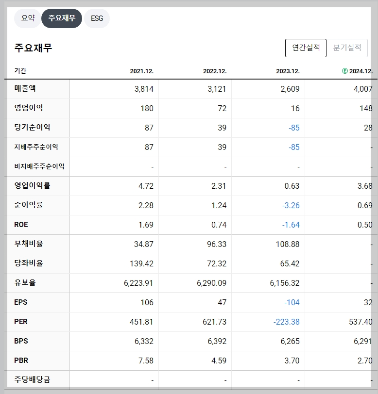 - 매출액: 2024년 예상 4,007억 원