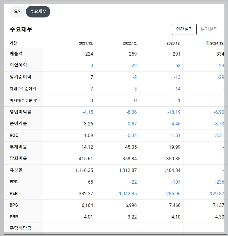 - 2023년 매출액: 291억 원