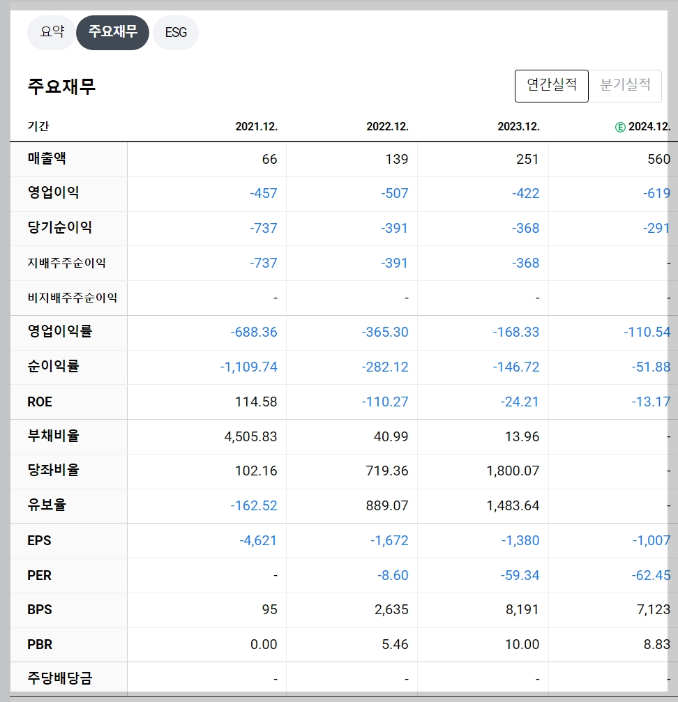 재무 지표는 매출 증가에도 불구하고 적자가 지속되고 있음을 보여줍니다. 이는 연구개발 비용 증가와 초기 시장 확장 비용 때문으로 분석됩니다.