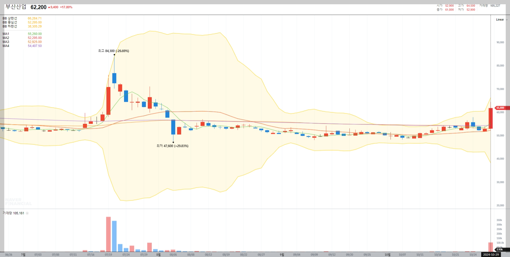 부산산업 볼린저밴드 매매기법 분석
