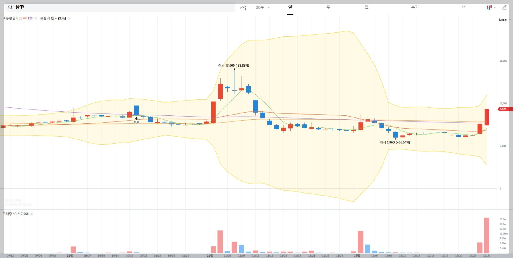 - 최고점: 13,900원 (-32.88%)