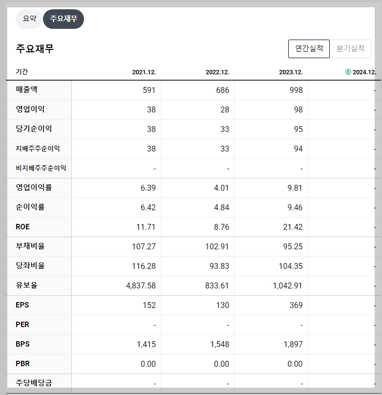 - 2023년 매출액: 998억 원 (전년 대비 +45%)