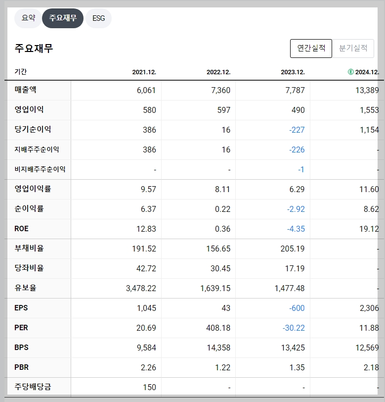 2024년 예상 실적은 매출액 13,389억 원, 영업이익 1,553억 원으로 큰 폭의 성장이 기대됩니다. 순이익률과 ROE 또한 개선될 전망이며 이는 기업 가치 상승에 긍정적인 영향을 미칠 수 있습니다.