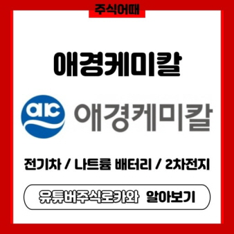 • 관련 키워드: 애경케미칼 주가 전망, 나트륨 배터리, 하드카본 음극소재, 친환경 소재