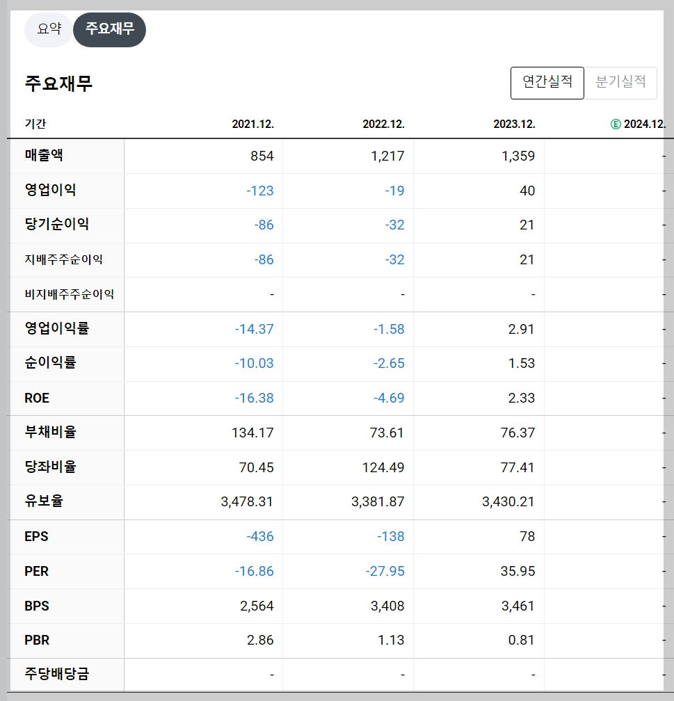 에코캡은 자동차 부품 제조업체로서 전선 및 케이블 관련 부품을 생산하는 기업입니다. 최근 몇 년간 전기차 시장의 성장과 함께 에코캡의 매출액은 꾸준히 증가하고 있으며, 2023년에는 1,359억 원의 매출을 기록했습니다. 영업이익 또한 2023년에는 40억 원으로 흑자 전환에 성공했습니다.
