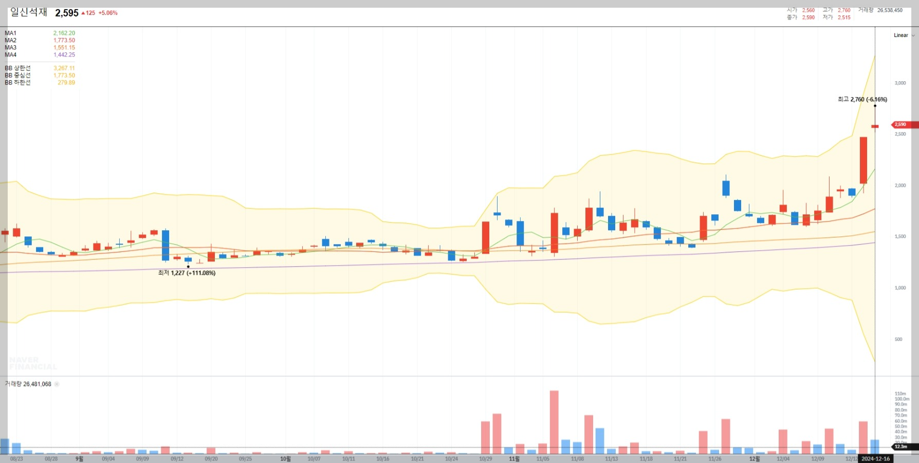 2024년 12월 16일 기준으로 일신석재의 주가는 많은 투자자들의 관심을 받고 있습니다. 이 글에서는 일신석재의 현재 주가와 배당금, 그리고 볼린저밴드 매매기법을 활용한 분석을 통해 향후 전망을 살펴보겠습니다.