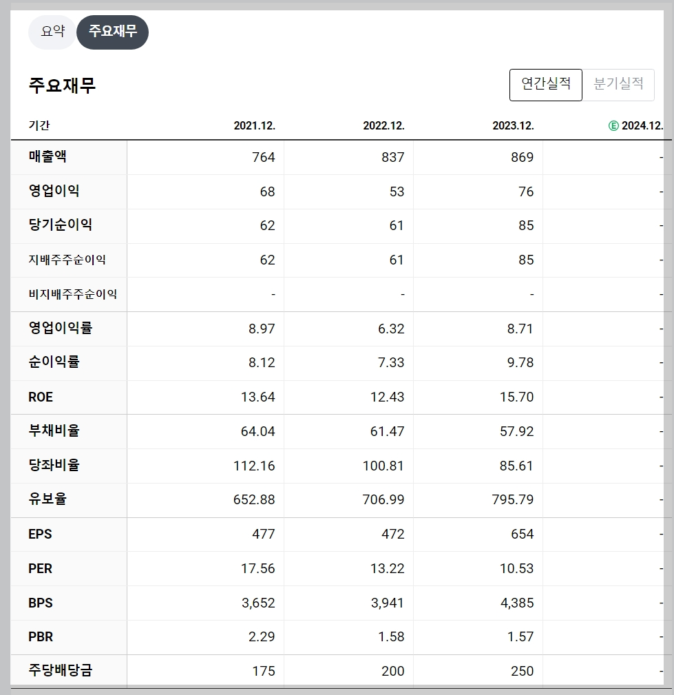 진양산업은 2024년에 50원의 배당금을 지급할 예정이며, 이는 시가배당률 0.8%에 해당합니다. 최근 몇 년간 배당금 지급이 꾸준히 이루어지고 있어 안정적인 수익 창출을 기대할 수 있습니다.