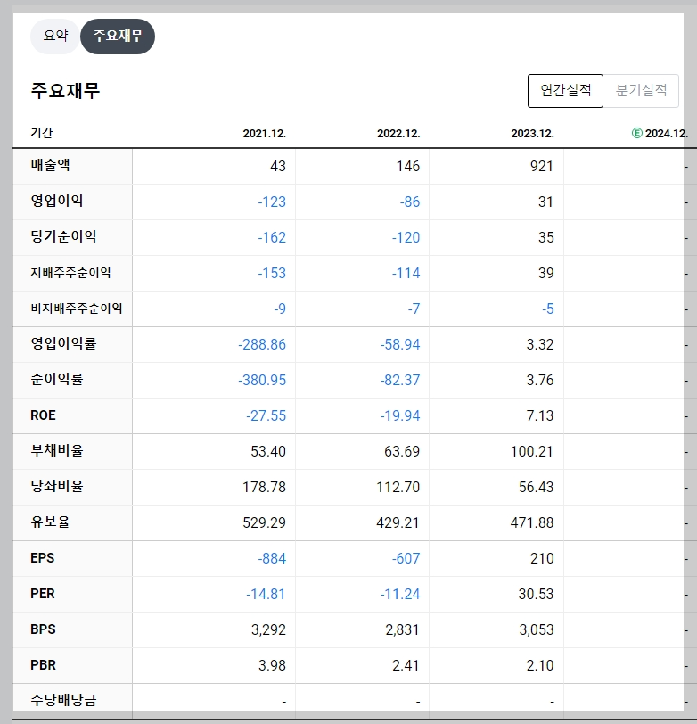 - 2023년 매출액: 921억 원 (전년 대비 +530%)