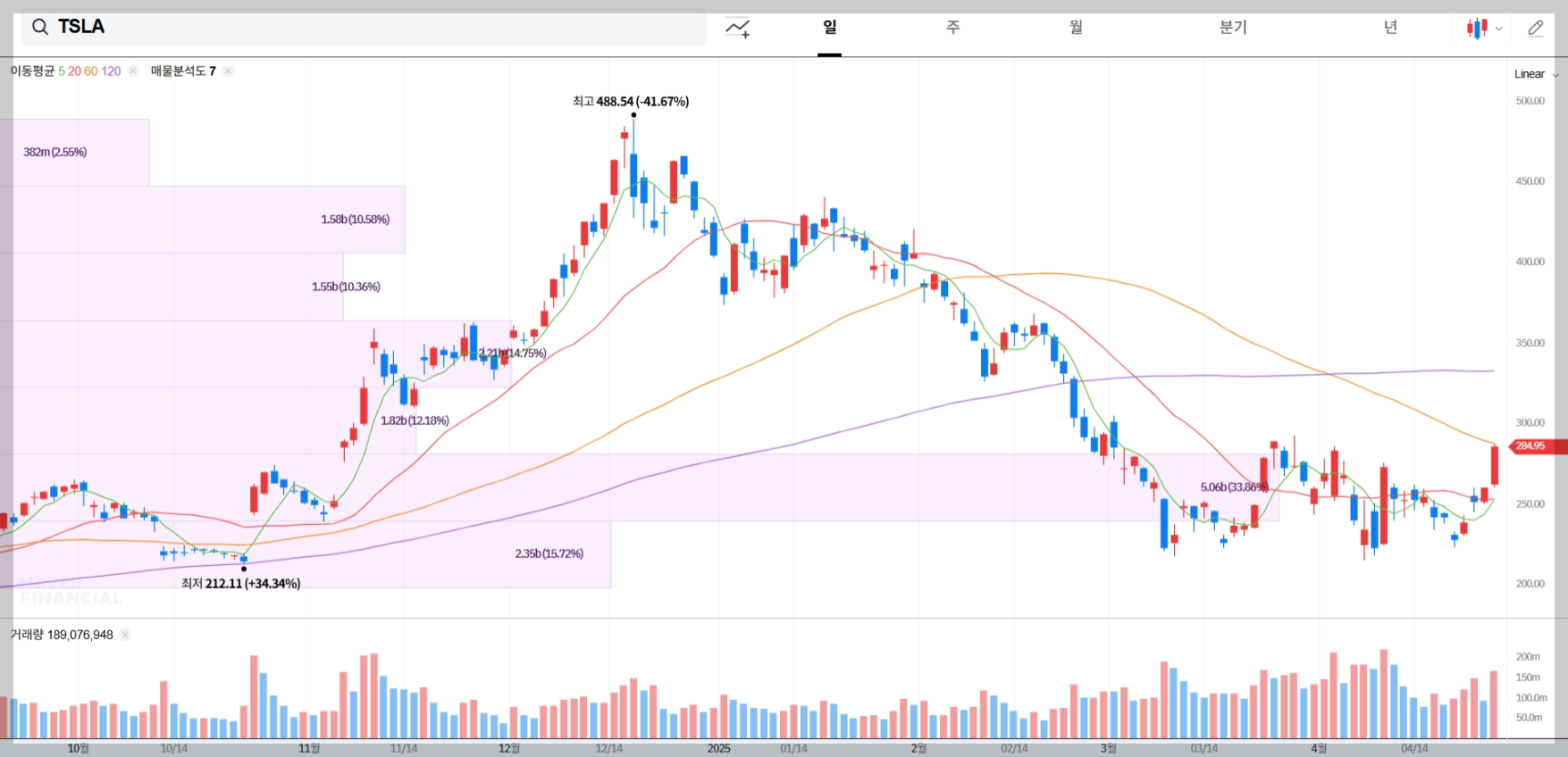 테슬라 현재 주가 분석 (2025년 4월 기준)