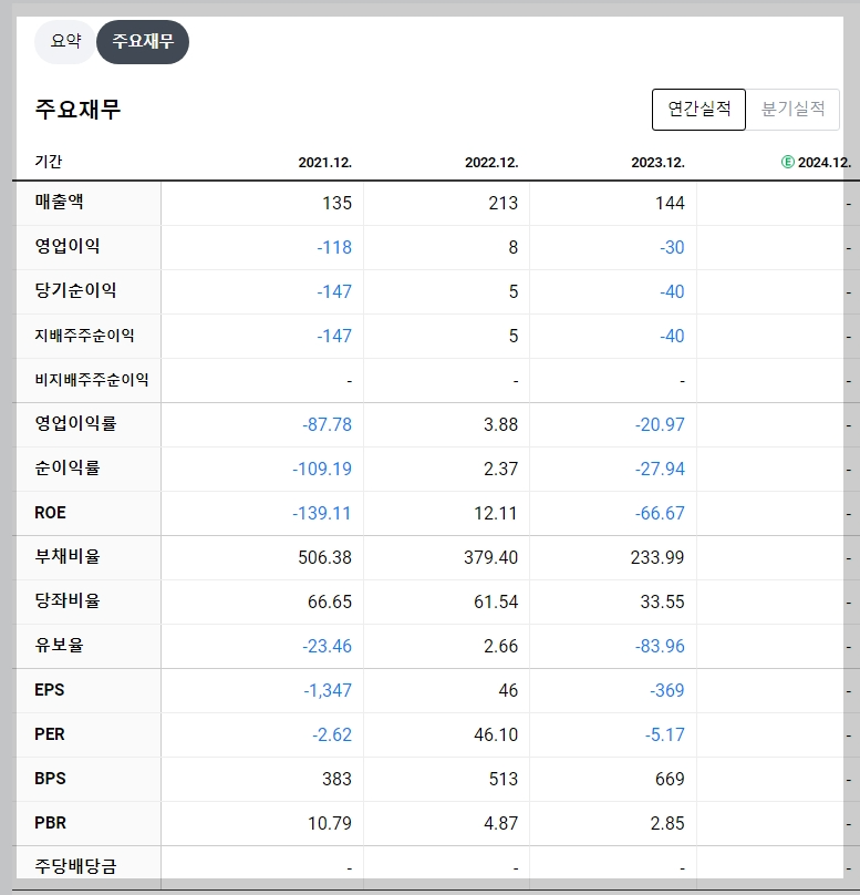 - 매출액: 2023년 기준 144억 원 (전년 대비 감소)