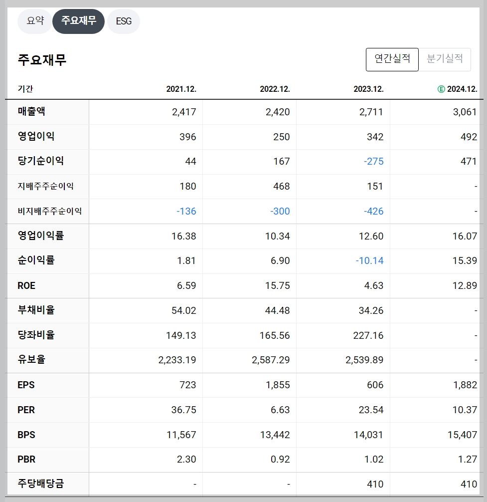 • 당기순이익: -275억 원 (순이익률: -10.14%)