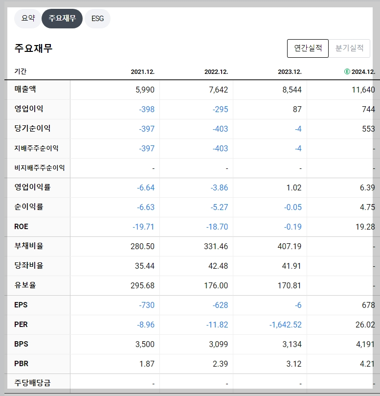- 2024년 예상 매출: 약 1조 1,640억 원