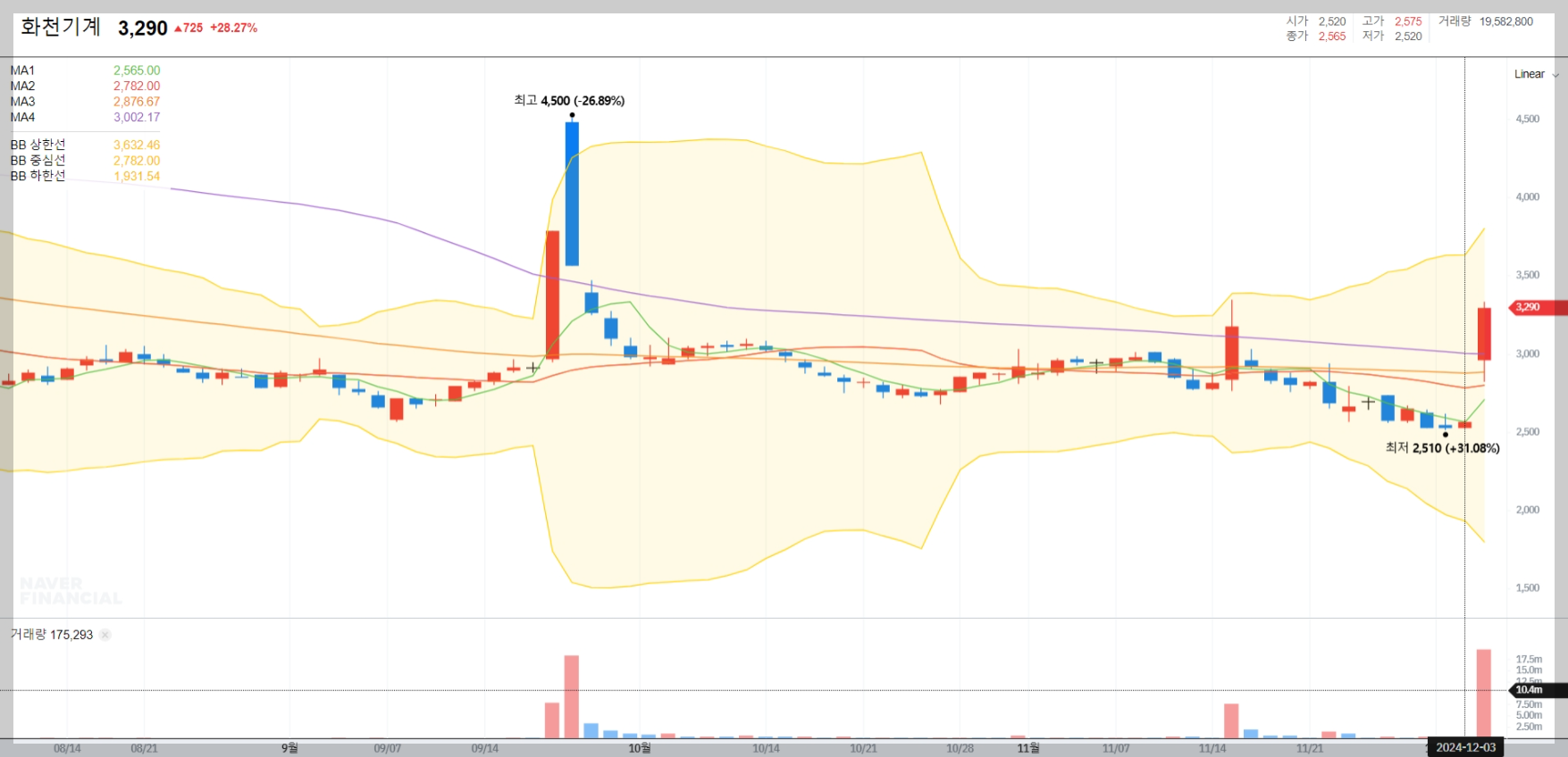 볼린저밴드는 주가의 변동성을 측정하는 기술적 지표로, 화천기계의 최근 변동성을 고려할 때 투자자들이 매수 및 매도 시점을 판단하는 데 유용할 수 있습니다.
