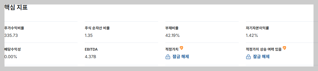 | 리스크 | - 높은 PER/PBR(고평가) |