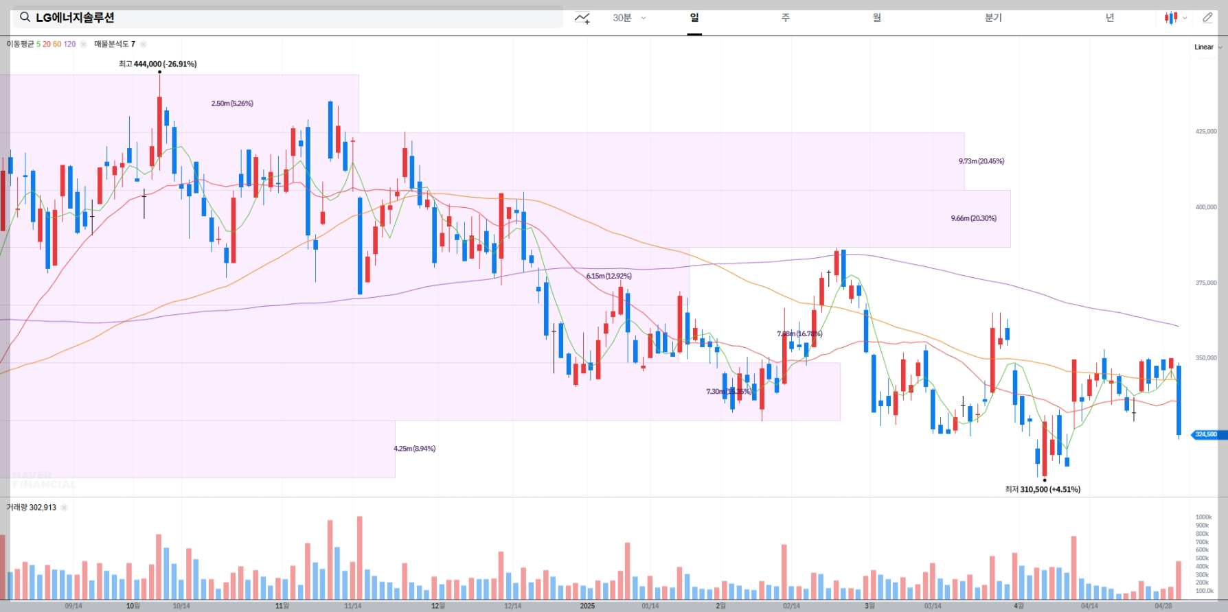 - 현재가: 324,500원 (2025년 4월 30일 기준)